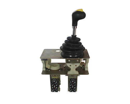 機(jī)械傳動部份裝在箱體上部的罩內(nèi),該傳動機(jī)構(gòu)分為單手柄聯(lián)動操縱機(jī)構(gòu)、抓斗雙手柄操縱機(jī)構(gòu)、主付鉤雙手柄操縱機(jī)構(gòu)、單手柄操縱機(jī)構(gòu)以及單手柄水平操縱機(jī)構(gòu)。手柄運動都是用直齒齒輪傳動凸輪軸的??刂破鞯耐馆嗇S均為立式布置,傳動部份各支點全部用滾動軸承,以降低功率損耗。
